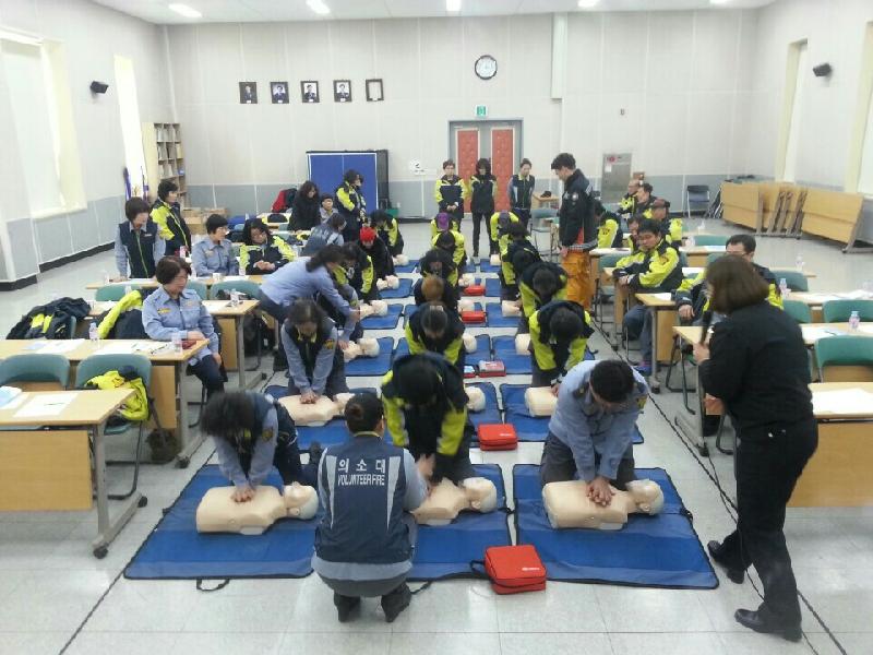 포항남부소방서(서장 김학태)에서는 15일 본서 대회의실에서 포항시 동해남여 의용소방대 56명을 대상으로 심정지 환자의 소생률 향상을 위한『1의용소방대원 1수료증 갖기』 교육을 진행하였다.『심폐소생술 1의용소방대원 1수료증 갖기』란 포항남부소방서 추진하는 프로젝트로써 의용소방대원이 심폐소생술 전문강사에게 3시간이상 심폐소생술 및 자동제세동기 교육을 수료 후 수료증을 발급받아 지역의 각종 행사장등에서 심폐소생술 홍보부스운영 및 음악과 함께하는 심폐소생술 체조(영웅 CPR체조)를 전파하는 홍보대사로 활동을 하게 된다.우리나라 급성심정지 환자는 연간 25,000여명 발생하며, 그중 10%정도만이 목격자에 의한 심폐소생술 처치를 받고 있는 실정이다. 심정지 환자의 골든타임은 5분으로 5분이내 심폐소생술 처치를 받으면 생존율을 2~3배 높일 수 있다. 김학태 서장은 “심정지 환자는 골든타임내 초기대응이 가장 중요함으로, 의용소방대원 및 119소년단 등 일반인의 심폐소생술 교육을 지속적으로 실시함으로써 심정지 환자 소생률 향상에 적극 앞장서겠다”고 밝혔다.// 심후보 기자 sky626201@naver.com