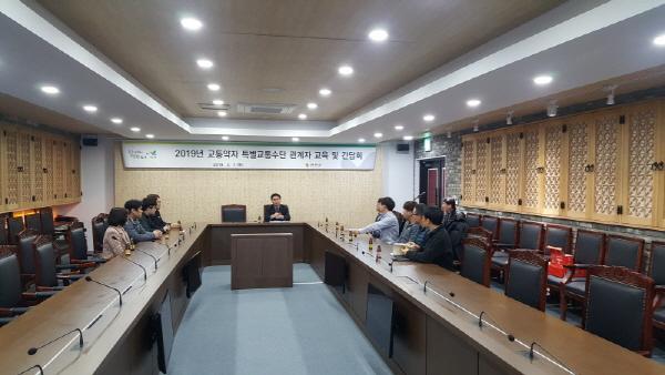 연천군은 지난 7일 본관 상황실에서 지역경제과장을 주재로 신정화 연천군시설관리공단 공공사업팀장과 연천군 교통약자 특별교통수단 운전원 등 16명의 관계자가 참석한 가운데 2019년 연천군 교통약자 특별교통수단 관계자 교육 및 간담회를 개최했다.