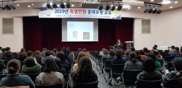 이번 교육은 특별민원에 대한 상황 유형별 사례를 직원들에게 소개하고 대응방법을 공유하며, 나아가 불필요한 감정 소모를 줄여 민원처리 역량을 제고해 시민을 위한 공직문화를 조성하기 위해 이뤄졌다.