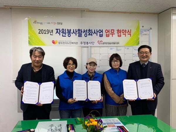 동두천시노인복지관과 동두천시종합자원봉사센터 그리고 우정봉사단은 지난 6일 동두천시 자원봉사활동의 발전과 활성화를 도모하기 위해 ‘2019년 자원봉사활성화사업 업무협약’을 체결했다.