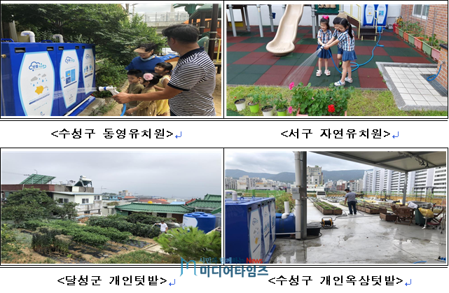 한편, 대구시는 2016년도부터 지난 3년간 사업비 2.4억원을 투입, 76개소에 빗물이용시설을 설치하여 물 재이용 현장교육, 화단 및 텃밭 물주기, 청소용수 등 다양한 용도로 활용하고 있으며, 연간 912톤의 수돗물 절감효과를 거둔 것으로 보고 있다.