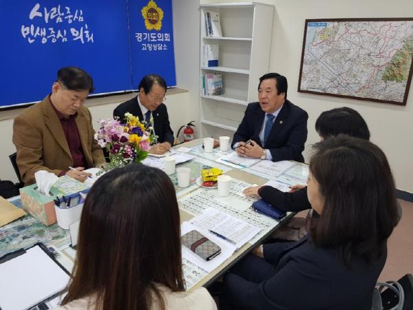 경기도의회 고양상담소 방재율 의원이 지난 8일 고양상담소에서 ‘2019년 음식물쓰레기 줄이기 운영계획’과 관련된 주제로 경기도교육청 급식과장을 비롯한 도청 공무원 3명, 이외의 관계자 3명과 만나 대책논의를 했다.