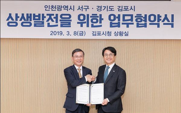 인천 서구와 경기 김포시가 지리적 경계 등으로 인한 여러 가지 제약요인을 극복하고, 공동 문제에 대한 협업관계를 구축해서 동반 성장·발전방안을 모색하기 위한 협약을 지난 8일 개최했다고 밝혔다.