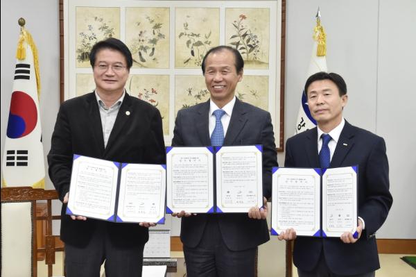 원주시는 지난 11일 오후 2시 도청 통상상담실에서 강원도-원주시-강원도개발공사 3개 기관 참여 하에, 원주 종축장 부지 활용을 위한 업무협약식을 개최했다.