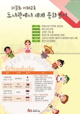 이번 행사는 고양시도서관센터와 다문화가족지원센터가 연계해 국내로 이주한 일본, 필리핀, 몽골, 러시아 외국인 강사를 활용해 다양한 문화를 접하고, 어린이들이 보다 쉽게 상호문화를 이해하고 어울릴 수 있도록 체험학습도 병행한다. 오는 26일부터 접수를 받아 4월 9일부터 4월 30일까지 매주 화요일마다 화정도서관 교양교실에서 프로그램을 운영할 계획이다.