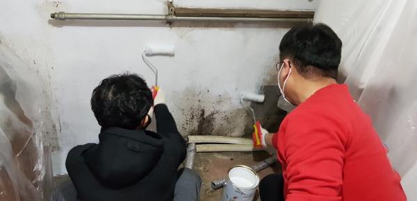 현장은 부엌과 방이 너무 노후 돼 곰팡이로 얼룩져있었고 냄새로 인해 생활환경이 매우 열악해 많은 보수가 필요한 상황이었다. 참여한 봉사자들은 살림을 모두 끌어내고 내벽에 페인트를 여러 번 덧발라 벽을 다시 하얗게 단장하고, 겨울철 결로와 곰팡이로 얼룩진 방은 습기가 발생되지 않도록 방수처리와 도배를 실시했다.