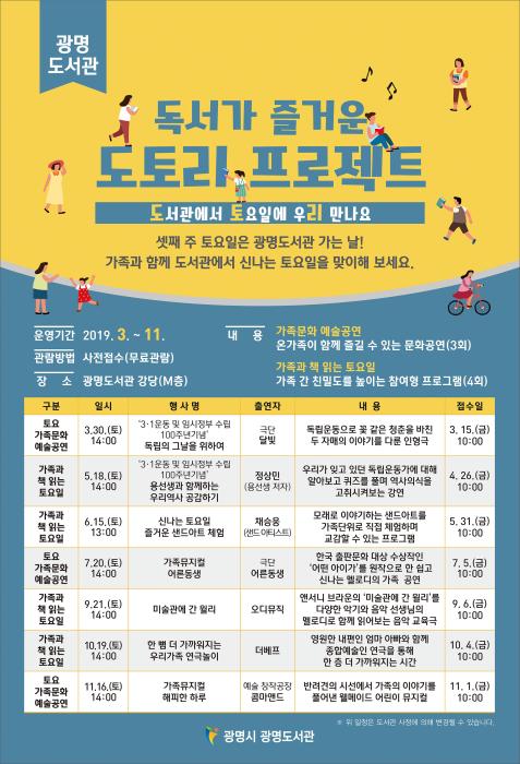 광명시 광명도서관은 평일 도서관 방문이 어려운 시민들에게 주말동안 가족과 함께 건전한 여가를 보낼 수 있도록 ‘도토리 프로젝트’를 운영한다.