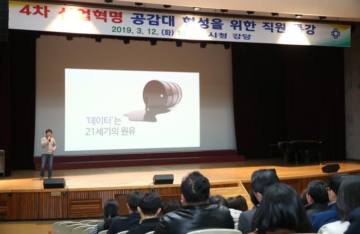 시청강당에서 열린 이날 특강에는 직원 4백여명이 참석했으며 최대호 안양시장도 함께해 경청했다.