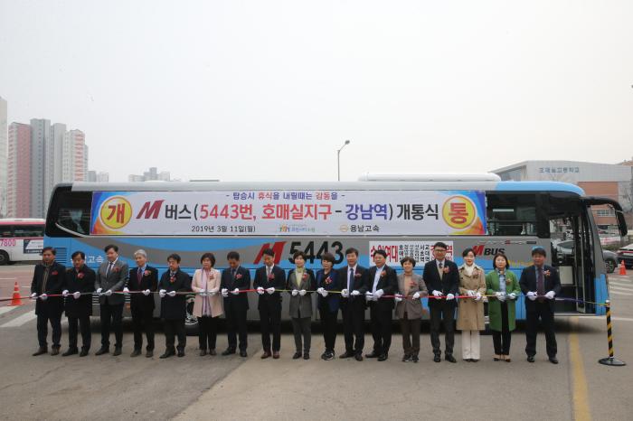 수원시의회 교통건설체육위원회(위원장 김미경)는 지난 11일 호매실동 행정복지센터 앞에서, 서수원 호매실에서 서울 강남역까지 잇는 M5443번 광역급행(M)버스(호매실~강남) 개통식에 참석해 관계자들에게 감사와 격려의 말을 전했다.