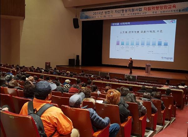 인천 서구는 지난 12일 인천서구지역자활센터와 연계해, 희망키움통장 및 내일키움통장 가입자 450여명을 대상으로, 상반기 자산형성지원사업 자립역량 강화 교육을 서구문화회관 대공연장에서 진행했다.