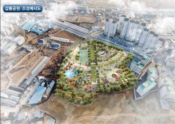 군은 지난해 9월 갑룡공원 조성계획을 수립하고 11월 기본 및 실시설계 용역에 착수, 지난 2월 주민설명회를 거쳐 갑곳리와 용정리를 아우르는 ‘갑룡공원’으로 명칭을 확정하는 등 주민 의견을 수렴했다. 현재 재해영향평가 및 환경영향평가가 진행 중이며, 이달 내 토지보상을 거쳐 올해 상반기까지 관련 개별법 인·허가를 거친 후 오는 7월 공사에 착수할 계획이다.