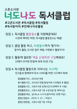 고촌도서관은 지난 12일부터 2019년 ‘너도나도 독서클럽’ 참여자를 접수한다고 밝혔다.