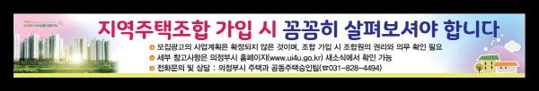 의정부시는 최근 관내에서 추진되고 있는 지역주택조합사업에 조합원으로 가입 시, 내용을 보다 꼼꼼히 살펴야 한다고 시민들에게 주의를 당부했다.