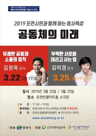 포천시는 반월아트홀 소극장에서 ‘공동체의 미래’라는 테마로 명사초청 특강 행사를 개최한다고 밝혔다.