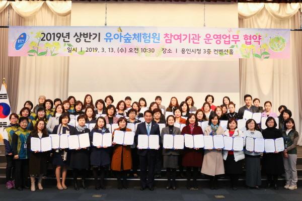 용인시는 13일 시청 컨벤셜홀에서 어린이집·유치원 61곳과 유아숲체험원 정기 이용 협약을 맺었다.