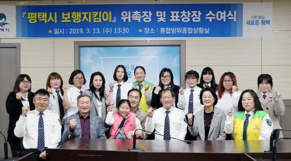 평택시는 13일 시청 통합방위상황실에서 보행지킴이 위촉장 및 표창장 수여식을 개최했다.