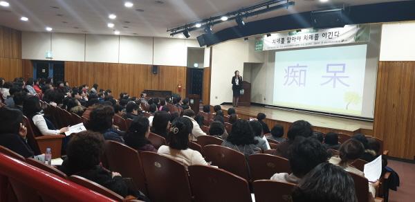 이번 2회기 교육에서 김능연 강사는 ‘치매를 알아야 치매를 이긴다’라는 주제로 강의했으며 치매예방을 위한 실천적 방법과 사례를 들어 참석자들의 이해도를 높혔다.