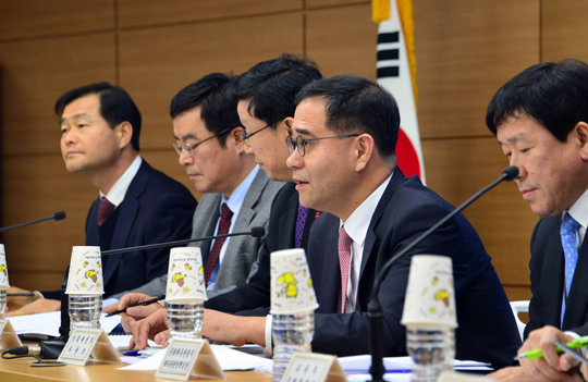 | 이찬우 기획재정부 차관보(오른쪽 두번째)가 정부세종청사에서 투자활성화대책 관계부처와 합동으로 사전브리핑을 하고 있다. 이 차관보는 “신산업·서비스산업 발굴 육성을 통한 일자리 창출에 정부 역량을 집중하겠다”고 말했다.(사진=기재부) |