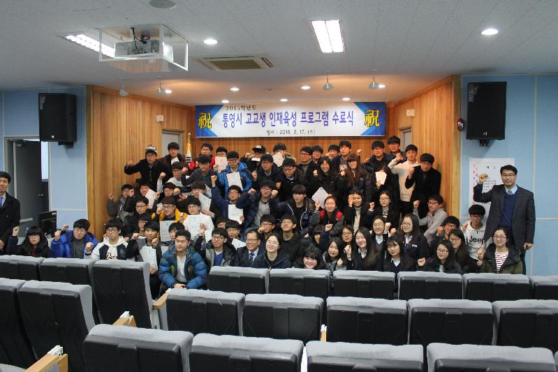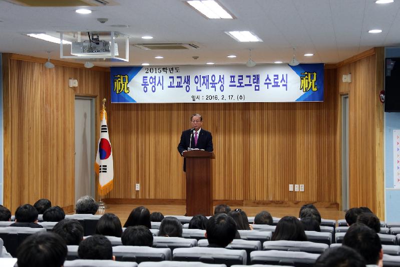 2015학년도 통영시 인재육성반(운영위원장 구성부 통영고교장) 수료식을 지난 17일 17시에 통영시립도서관 시청각실에서 개최했다.