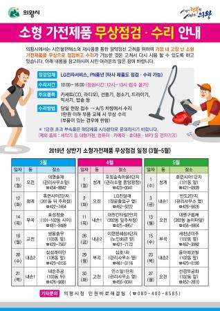 의왕시는 시민들을 대상으로 이달부터 상반기 소형 가전제품 무상점검·수리 사업을 운영한다.