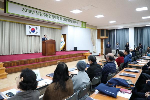 남양주시는 지난 13일 농업기술센터 대강당에서 2019년 신입생 100명이 참석한 가운데 ‘남양주농업인대학 및 경영대학원 입학식’을 개최했다.