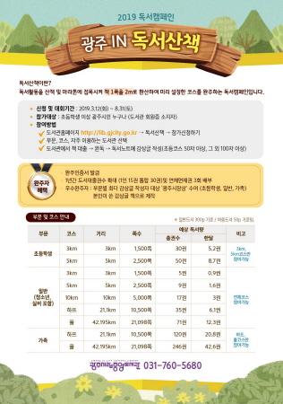 광주시 시립중앙도서관은 책 읽는 광주시 프로젝트 사업의 일환으로 ‘2019 제2회 광주 IN 독서산책’ 캠페인을 오는 8월까지 진행한다고 14일 밝혔다.