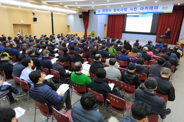 정비사업 시민아카데미는 재건축·재개발 정비사업에 대한 올바른 이해를 바탕으로 건전한 정비사업 문화를 정착시키기 위해 과천시가 실시하고 있는 시민 교육 프로그램이다.