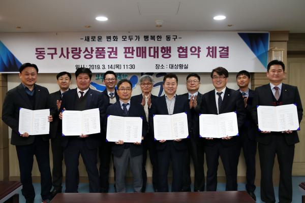 이날 협약식에는 허인환 동구청장과 동구사랑상품권 판매대행점 금융기관 대표 10명이 참석해 업무 협약을 체결하고, 동구사랑상품권 판매 및 환전 업무에 차질이 없도록 긴밀한 협력체계를 구축하기로 했다.