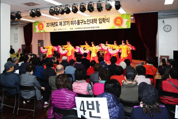 입학식은 김정식 미추홀구청장과 이한형 미추홀구의회 부의장, 제 37기 입학생 225명 등이 참석한 가운데 노인대학 한국무용팀의 공연을 시작으로 진행됐다.