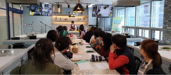 이번 HAPPY건강요리교실은 평소 본인의 식습관에 대해 생각해보고, 한국인의 식사습관 중 국물섭취에 치중해서 나트륨 섭취가 많다는 점을 강조해 나트륨 섭취 위험에 대해 경각심을 깨우치고, 생선을 염장하지 않고 담백하게 조리할 수 있는 방법 및 생 채소 섭취의 필요성과 저염·저당·고단백 메뉴와 조리법을 선정해 600kcal이하의 식사를 섭취할 수 있도록 식습관 개선 교육이 진행됐다.