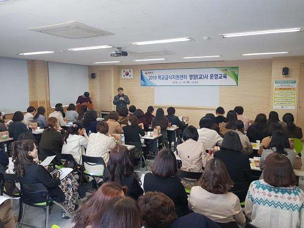 이날 운영교육에는 관내 학교 영양교사 60여명이 참석한 가운데 2019년 익산시 학교급식지원센터 운영방향 및 수발주 프로그램 시스템 사용 방법에 대한 교육을 실시하였으며, 영양사들의 의견수렴 등 소통의 시간을 가졌다.