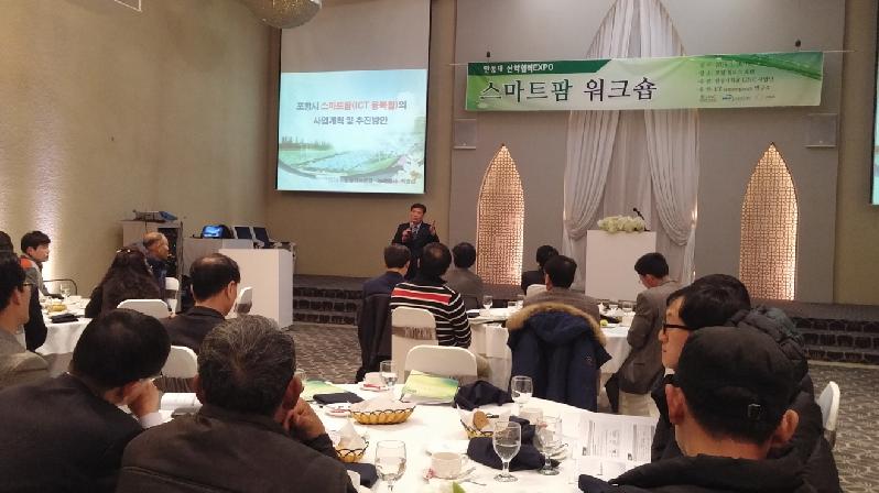 포항시 농업기술센터는 지난16일 필로스호텔에서 포항시 시설원예 농가 등 80여명이 참석한 가운데 ‘스마트팜(SMART FARM) 워크숍’을 개최했다. 포항시 농업기술센터와 한동대 링크사업단이 공동 주최하고, KT가 후원한 이번 워크숍은 침체된 농업시장에 힘을 불어 넣을 수 있는 신성장동력인 스마트팜을 소개하고 확산시키기 위해 마련됐다. ‘스마트팜’은 ICT(정보통신기술)로 농작물 시설의 온도와 습도, 햇볕량 등을 측정 분석하고, 모바일 기기를 통한 원격 제어가 가능한 농장을 말한다. 이날 워크숍은 포항시 스마트팜의 사업계획 및 추진방안, KT의 스마트팜 솔루션 및 적용사례, 스마트팜을 잘 활용하고 있는 전라남도 장수군 토마토시설재배 농가(이동주)의 현장 사례발표 등 주제 발표와 관련 전문가 및 시설재배 농가가 참여하는 지정토론 순으로 진행됐다. 포항시 관계자는 “이번 워크숍을 통해 농업인들이 어렵고 멀게만 느끼던 첨단과학농업 스마트팜 기술에 대해 배우고 친숙해 질 수 있는 시간이 됐다”며 “앞으로 포항시, 한동대, 기업의 관련 전문가 등의 꾸준한 상호 협력을 통해 첨단과학 농업을 발전시켜 나가도록 하겠다”고 말했다.
