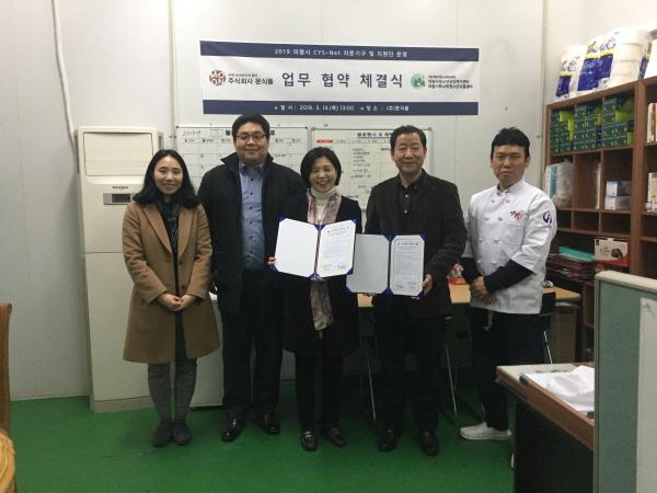 ㈜문식품 사무실에서 진행된 이날 협약식에는 정부순 센터장과 문동철 ㈜문식품 대표이사를 비롯한 관계자들이 참석한 가운데, 청소년 지원을 위한 업무협약을 맺고 앞으로 다양한 상호 협력을 이어가기로 했다.