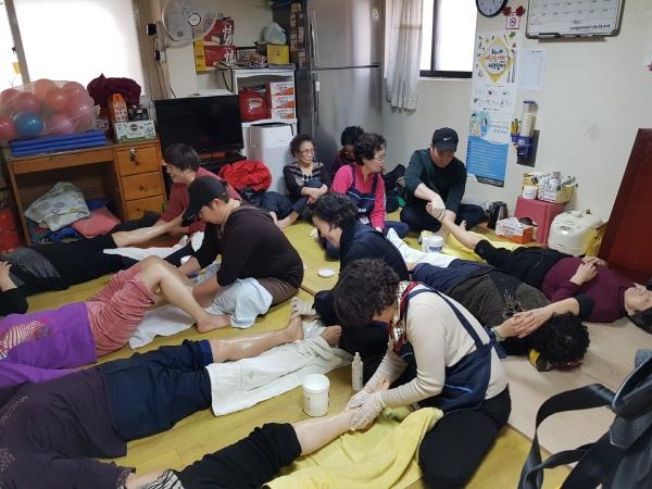 이후 발관리봉사단을 구성해 매월 1회 경로당과 코스모스 축제장 등에서 재능 기부를 통한 발관리 봉사를 해 봉사활동을 펼치고 있다. 발관리봉사단은 지난 13일에도 5명의 단원들이 인창동에 위치한 충효경로당을 찾아 어르신 15분께 발 마사지 봉사를 진행했다.