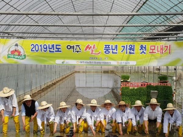 여주시농협조합공동사업법인 주관으로 진행된 2019년 첫 모내기 행사는 이항진 여주시장, 정병국 국회의원, 유필선 여주시의회의장, 경기도의회의원, 여주시의회의원, 유관기관 단체장 등 50여명이 대왕님표 여주 쌀 생산을 위한 첫 걸음을 함께했다.