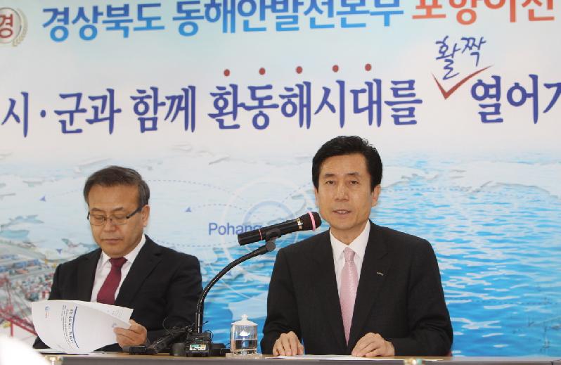 이강덕 포항시장이 18일 시청브리핑룸에서 “경북 동해안발전본부 이전 확정에 따라 경주, 영덕, 울진 등 동남권 시군이 함께 노력해 ‘환동해시대’를 열어 나가자고 강조했다. 경북 동남권 100만 도민들의 오랜 염원이었던 「경상북도 동해안발전본부」가 포항으로 이전이 확정된 가운데, 이강덕 포항시장은 기자회견을 갖고 신도청시대 개막에 따른 경상북도의 균형발전과 동해안지역 주민들의 편익증진을 위해 미래 100년을 내다보는 혜안으로 심모원려(深謀遠慮)의 결정을 내려주신 김관용 지사님을 비롯한 도청 관계자에게 감사인사를 전했다. 이날 이 시장은 “이번 결정으로 경북도내 해양수산 분야의 현장행정 강화로 동남권지역 주민들의 접근성이 개선되는 것은 물론, 동남권 시군의 상호협력과 공동발전을 위한 새로운 전기가 마련됐다”고 강조했다. 이어, 이 시장은 바다는 희망의 보고(寶庫)이자 무한한 가능성을 지닌 블루오션으로 현 정부가 국가발전의 비전으로 제시한 창조경제의 중심이며, 바다를 중심으로 고부가가치를 창출하는 해양관광산업과 해양물류산업 육성, 해양자원 개발을 통해 지속가능한 성장을 추구하는 한편, ‘바다의 창조경제’실현을 통해 새로운 미래를 활짝 열어나가야 한다고 덧붙였다. 또한, 이 시장은 경북 동해안은 537km의 해안선을 따라 천혜의 관광자원이 분포되어 있을 뿐만 아니라 동해바다 한 가운데 신비의 섬 울릉도 및 독도와 함께 드넓은 해양 영토에 잠재된 무한한 해양자원은 경북의 미래 먹거리 창출에 희망이 될 것이라며, “본격적인 신해양시대를 맞아 경북의 지리․경제적 잇점을 고려한 이번 동해안발전본부의 동남권 이전은 김관용 지사님께서 평소 강조하고 계시는 도민본위와 현장중심․미래지향적 행정에 그 기반을 둔 것이라 생각한다”고 말했다. 특히, 동해안발전본부 이전은 단순히 도청 산하 1개 기관의 이전이 아니라, 최근 정부가 중점적으로 추진하고 있는 ‘유라시아 이니셔티브’와 연계하여 경북도 차원에서도 해양 분야를 새로운 미래 전략산업으로 집중 육성해 나가겠다는 강력한 의지를 담고 있다고 강조했다. 이어 이 시장은 “이번 동해안발전본부 이전이 경북의 환동해 진출의 기폭제가 되어 북방경제권을 선점하는데 핵심적인 역할을 수행할 것”이라며, 중국 동북3성, 러시아, 일본 등과의 활발한 인적․물적 교류 촉진은 물론 통일시대를 대비한 내륙과 해양을 연결하는 새로운 국가 발전의 축으로서 동남권 전체를 연결하는 철로와 육로, 해로, 항로 등 입체적 초광역 SOC 체계를 구축하는데 큰 도움이 될 것으로 확신했다. 마지막으로 이 시장은 “이제 각 시군은 지역적 경계를 넘어 동해안발전본부를 중심으로 100만 동남권 지역민들의 염원과 의지를 담아 경상북도가 미래 신해양시대를 활짝 열어가는데 함께 힘을 모아줄 것” 과 “동해안발전본부가 구심체가 되어 동남권 지역민 모두가 한 마음 한 뜻으로 함께 「환동해를 선도하는 해양경북」을 만들어 가기를 희망한다”고 당부했다.// 심후보 기자 sky626201@naver.com
