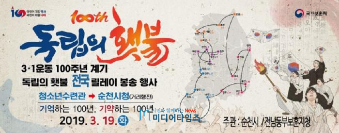 릴레이는 10시30분 청소년수련소에서 출발, 순천시청까지 총 1.2㎞를 허석 순천시장을 비롯한 기관단체장, 보훈단체장, 학생, 시민 등 총 100명이 독립의 횃불을 들고 행진한다. 경찰 선도차량을 선두로 제7391부대 5대대 군 장병 8명이 든 대형태극기, 만세재현 연극 팀, 횃불 봉송주자, 시민 500여 명 ,독립의 횃불 랩핑버스등의 순으로 진행된다.