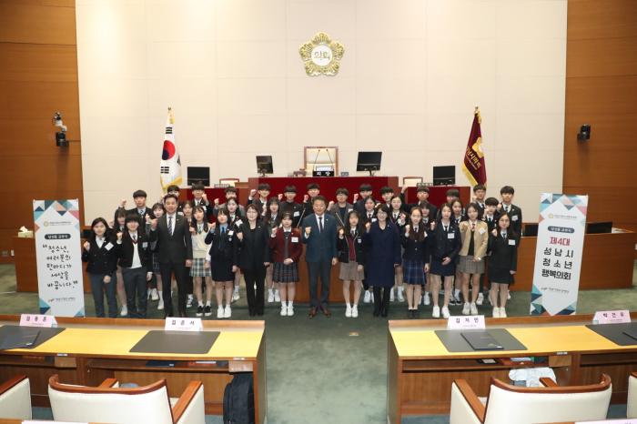 성남시의회(의장 박문석)는 16일 성남시의회 본회의장에서 성남시청소년재단 주관으로 열린 ‘제4대 성남시청소년행복의회 당선증 교부식’에 참석했다.