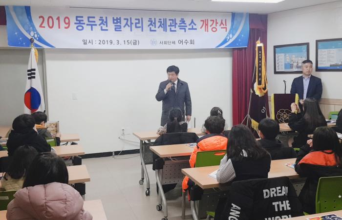 동두천시(시장 최용덕)는 지난 15일 사회단체 어수회(회장 이승환) 주관으로 동두천별자리관측소(동두천시 방죽로 16-47 소재)에서 청소년들을 위한 “2019년 별자리 교실”을 개강하였다.