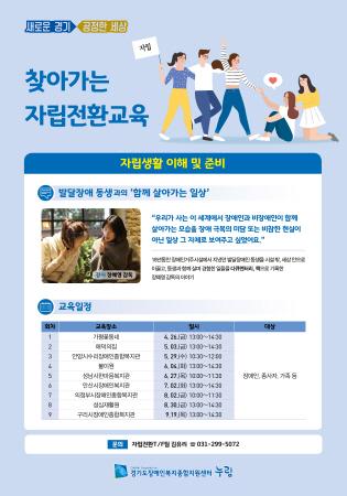 교육일정과 자세한 내용은 경기도 장애인복지종합지원센터 자립전환T/F팀으로 문의하면 된다.