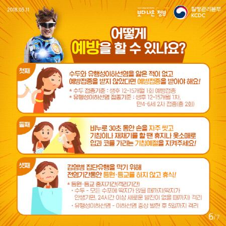 조정옥 경기도 감염병관리과장은 “학기 시작 초부터 학교와 가정에서 각별한 관심을 갖고 예방수칙을 준수하는 것이 무엇보다 중요하다”라며 “증상발생 시 즉시 병원 진료를 받고 집단발생이 의심되면 곧바로 관할 보건소에 신고해 주시길 부탁한다”고 말했다.