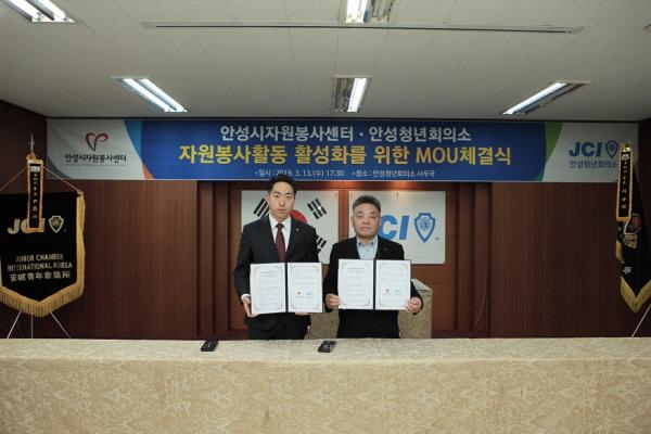 지난 13일 안성청년회의소는 자원봉사 활성화를 통해 모두가 행복한 지역공동체를 형성하고자 안성시자원봉사센터와 업무협약을 체결했다.