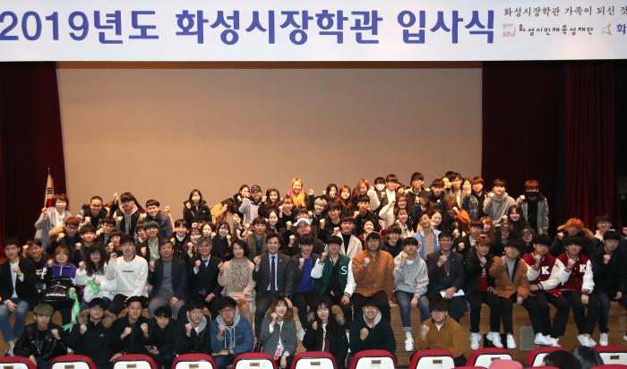 화성시가 지난 16일 서울 동작문화복지센터 대강당에서 ‘2019년도 화성시 장학관 입사식’을 개최했다.
