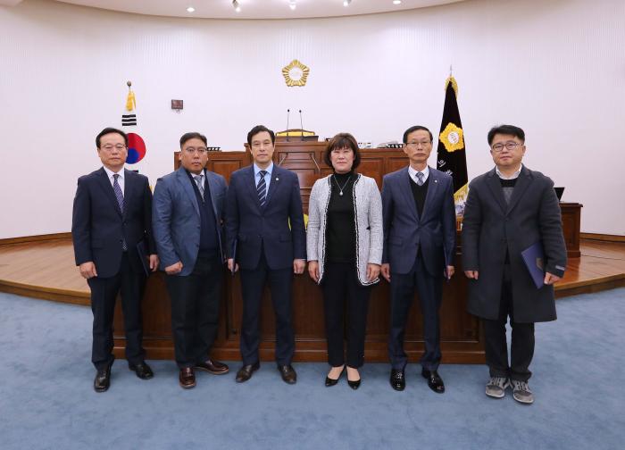 | 방미숙 의장과 2018회계연도 결산검사위원으로 위촉된 위원들 기념사진. |