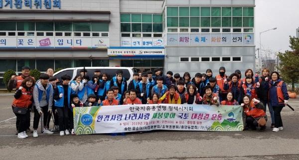 한국자유총연맹 평택시지회 송탄포순이, 서정동·송북동·중앙동·지산동분회는 지난 16일 회원 30명과 인근 학교의 청소년 20명이 참여한 가운데 새봄맞이 국토 대청결 운동을 실시했다.