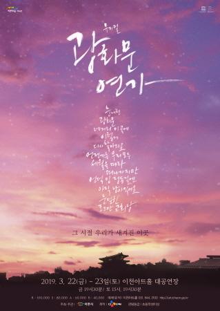 2019년 3월 이천아트홀은 공연장을 찾은 여러분들과 함께 우리가 가장 아름다웠던 바로 그 때로 여행을 떠날 것이다. 그리고 그 여행에는 이영훈 작곡가의 감미로운 사랑노래가 마치 주인공 ‘명우’를 안내하는 ‘월하’처럼 여러분의 아름다웠던 추억의 그 순간까지 함께 할 것이다. ‘아쉬움 가득한 과거의 추억’에서 ‘가장 소중한 지금의 사랑’을 이야기하는 뮤지컬 ‘광화문연가’는 오는 3월 22일부터 23일까지 이천아트홀 대공연장을 통해 선보여진다.