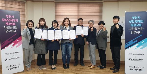 부천시와 부천시장애인종합복지관, 부천여성인력개발센터는 지난 14일 부천시평생학습센터에서 성인장애인 평생학습 활성화 및 부천인생학교 수료 후 지역연계활동을 위한 업무협약을 체결했다.