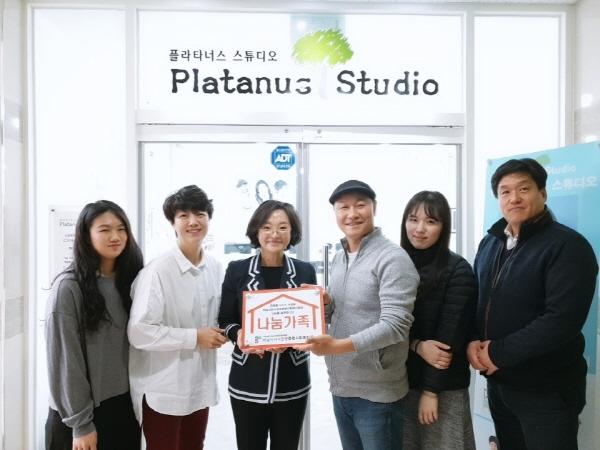 플라타너스 스튜디오는 하남시미사강변종합사회복지관과 지난 18일 나눔가족 현판식을 통해 제 25호 나눔가족이 되어 지역사회의 소외계층을 위해 함께 동행하기로 했다.