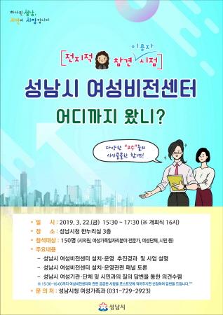 ‘성남시 여성비전센터 어디까지 왔니’를 주제로 한 5명의 패널 토론도 진행된다.
