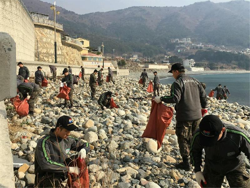 거제시 수양동 소재 육군 제8358부대(대대장 장영탁)는 지난 19일 오전9시부터 2시간여 동안 부대원40여명과 함께 일운면 망치리 해안변 일원에 유입 된 집적해양쓰레기 500kg를 수거 거제시 어업진흥과 담당부서에 인계했다.